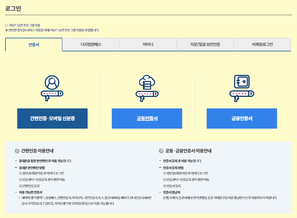 - 신분증 제시(다음 중 1개 : 주민등록증, 청소년증, 운전면허증, 국가유공자증, 장애인등록증(주민등록번호가 포함된 경우만 가능), 여권