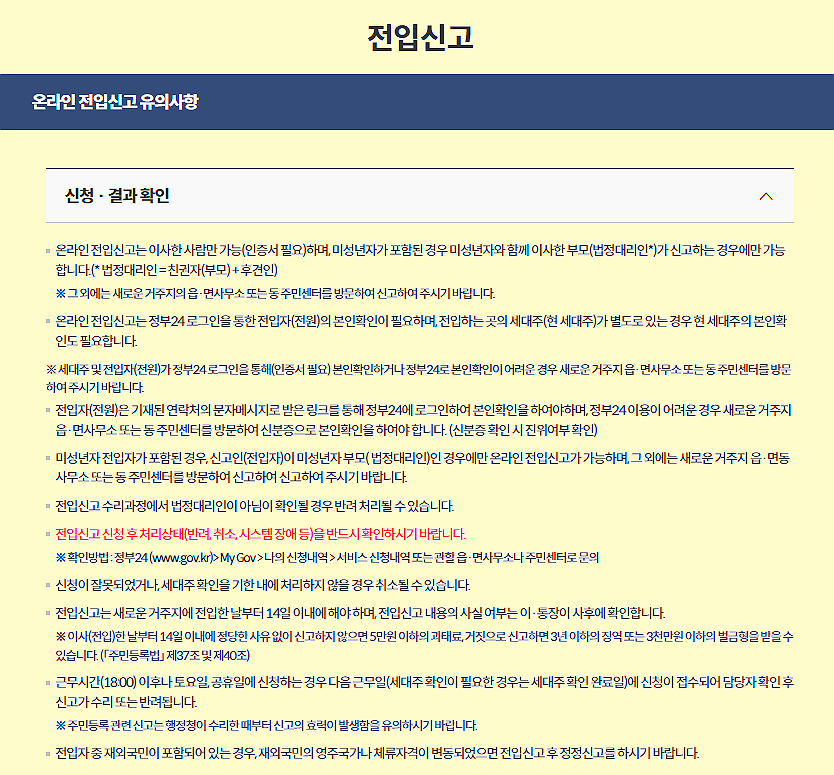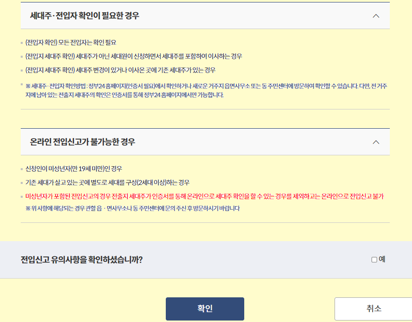 온라인 전입신고 시 [세대주확인]이 필요한 경우 전입하고자 하는 주소지의 세대주가