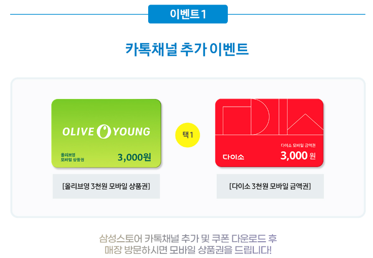 대상 : 삼성스토어 / 하이마트/ 전자랜드/ 이마트/홈플러스 행사매장에서 행사모델 구매 시