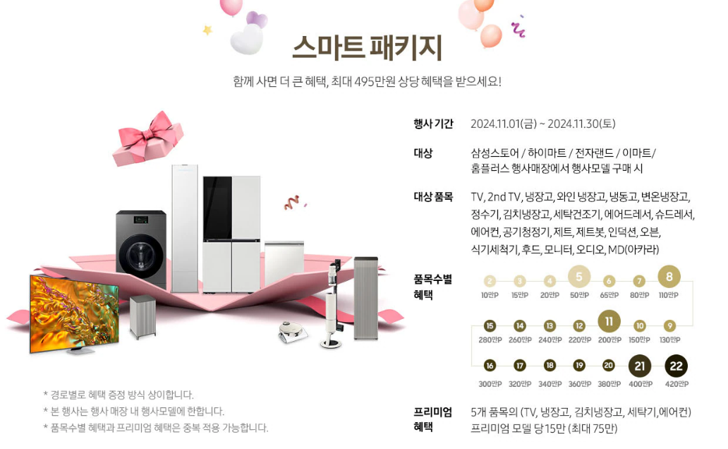 대상: 삼성스토어 / 하이마트/ 전자랜드/ 이마트/홈플러스 행사매장에서 행사모델 구매 시