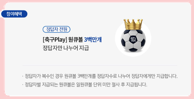 - 참여자 전원 [축구 Play] 원큐볼 100개 즉시지급